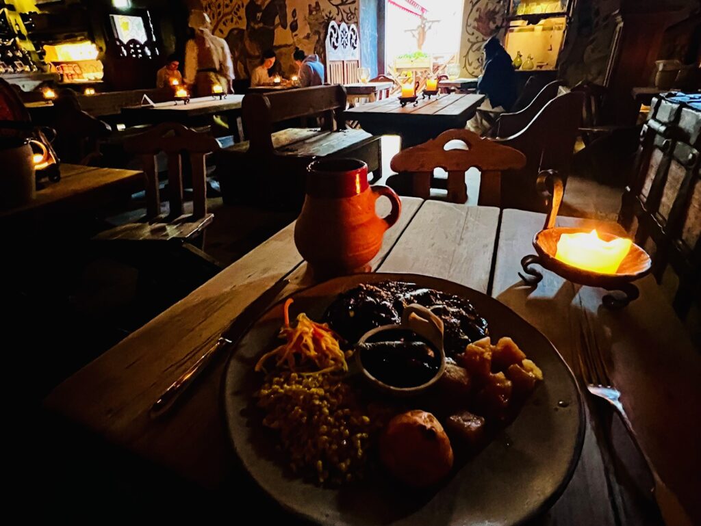 - For medieval fare, head to Olde Hansa or III Draakon. Along with good beer and liquor options, Olde Hansa has a variety of unique medieval dishes, including bear with saffron sauce, dried game meats, and bear, wild boar, and elk sausage (don’t worry, there are some decent vegetarian options here as well). III Draakon also has good beer, medieval dishes like elk soup and meat pies, and (be forewarned) a tavern lady who is rude to customers on purpose.